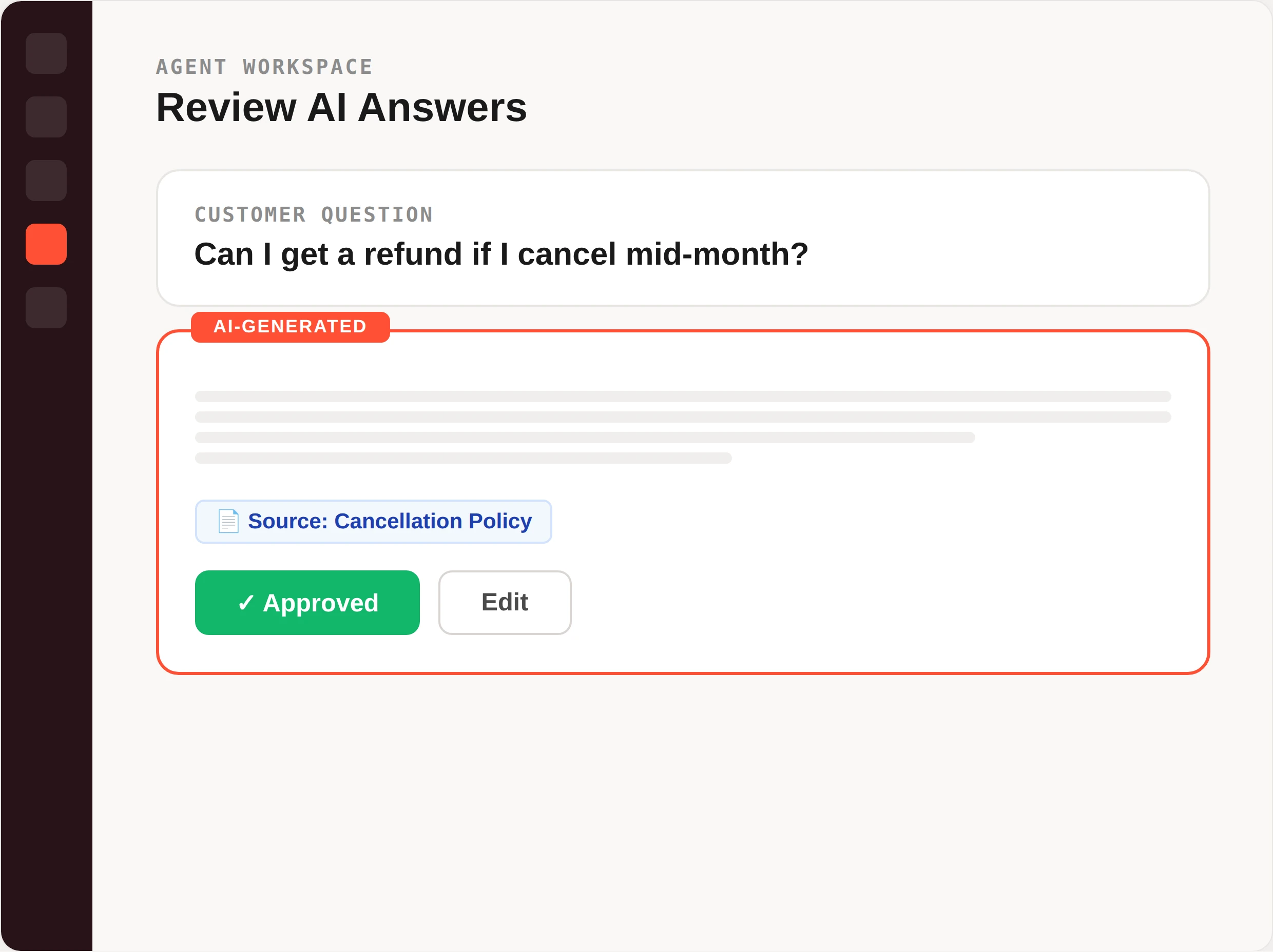 Comprendly generates draft answers grounded in your approved knowledge, with sources included.
