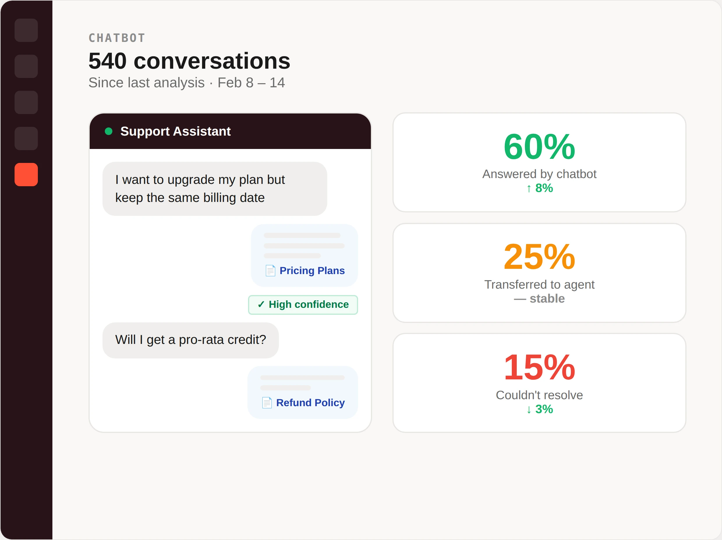 You gain a clear demand baseline by topic, product, and trend — so improvements reflect reality.