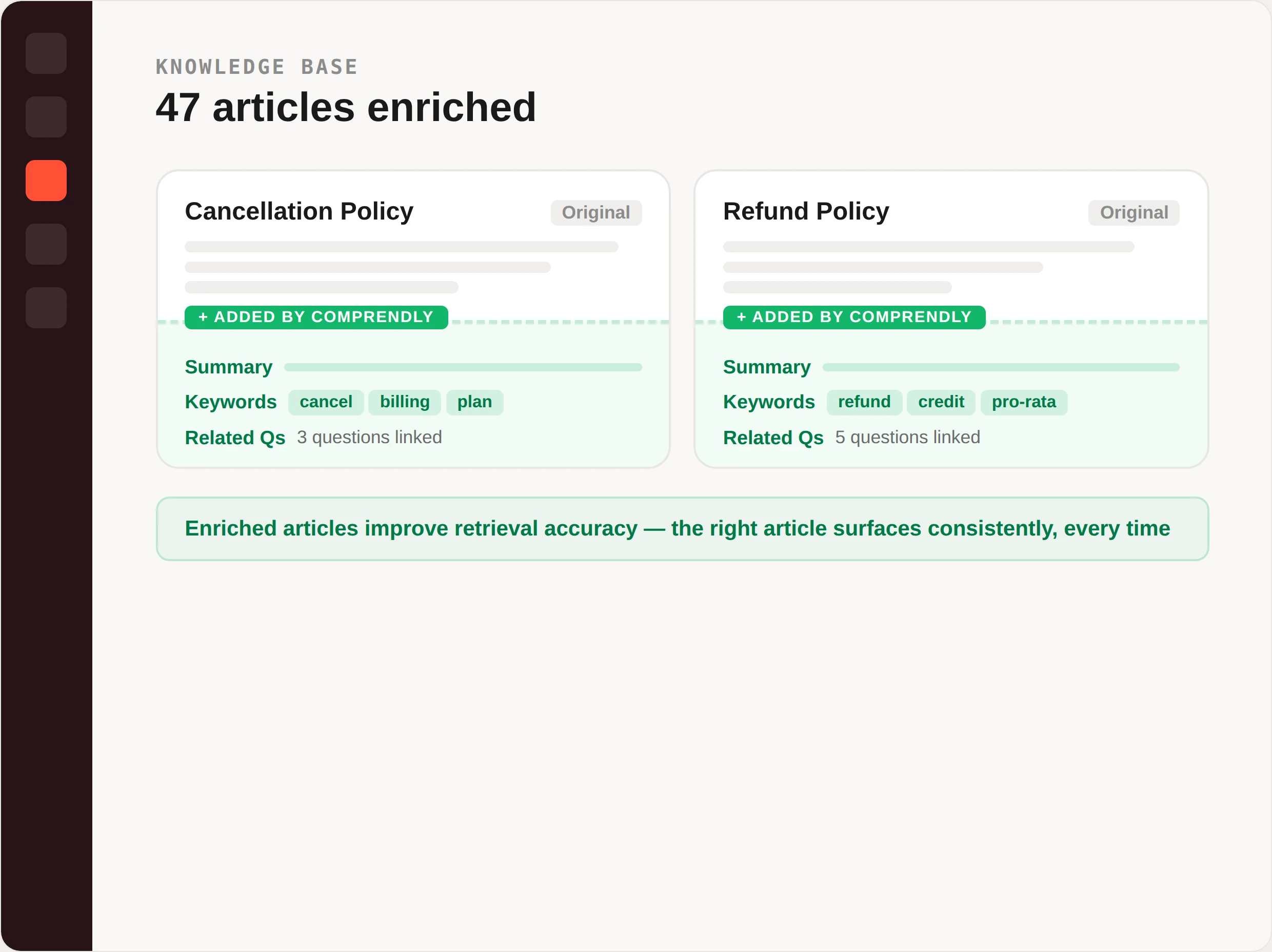 We import and structure your knowledge base so content is clean, searchable, and grounded in metadata.